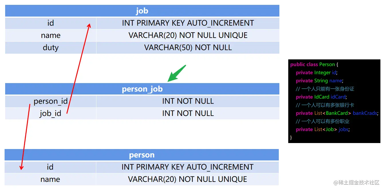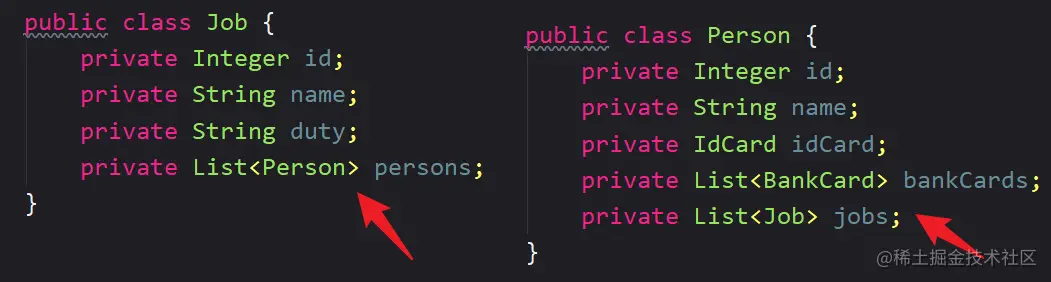 查询 job 列表,同时查询出从事该 job 的 person 列表: