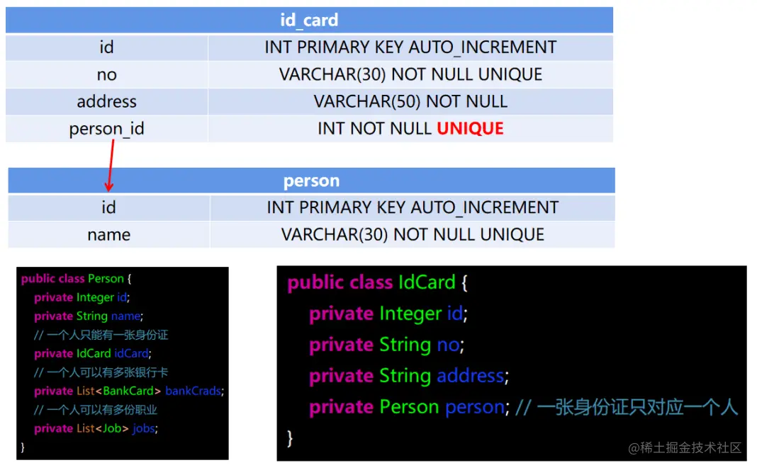 (1) 查询 person 信息, 同时查询出 person 对应的 id_card 信息