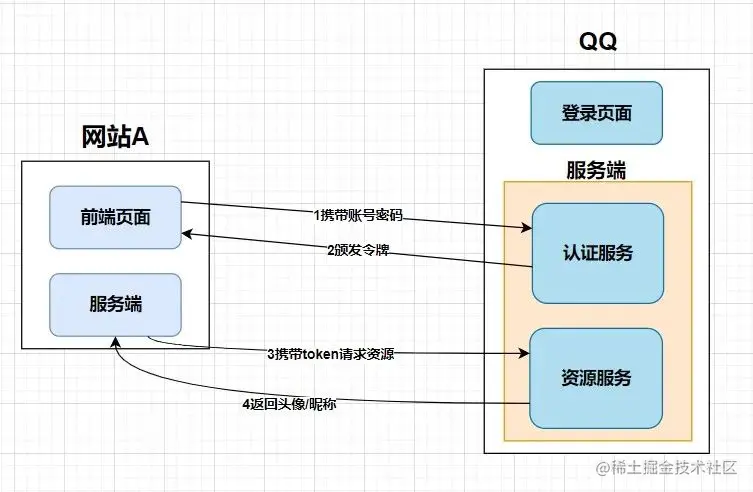 - Resource Server:资源服务器,存储用户资源的服务器,即例子中的QQ/微信存储的用户信息;