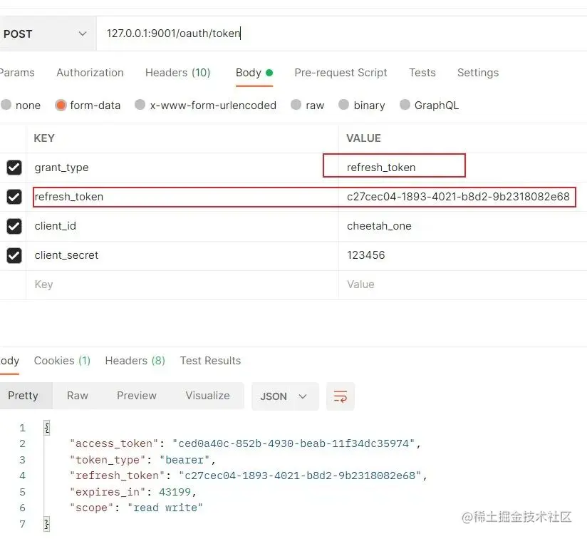 流程:发送请求127.0.0.1:9001/oauth/authorize?response_type=token&client_id=cheetah_one跳转到登录页进行登录,response_type=token表示获取token。