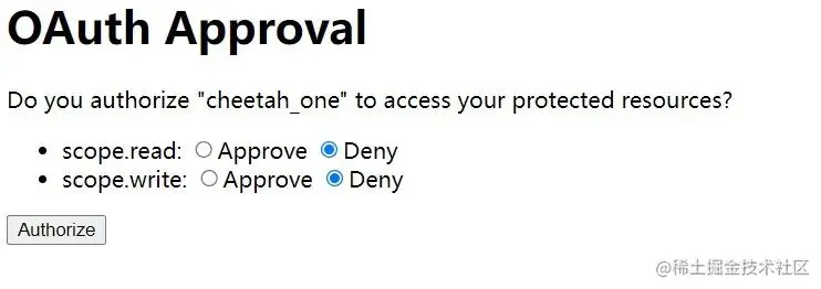 该页面是oauth2的默认页面,输入用户的账户密码点击登录会提示我们进行授权,这是数据库oauth_client_details表我们设置autoapprove为false起到的效果。