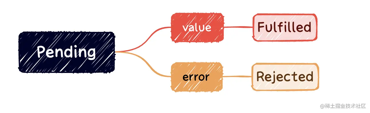 在更改状态的同时,将回调函数中成功的结果或者失败的原因都保存在对应的属性中,方便以后来获取。