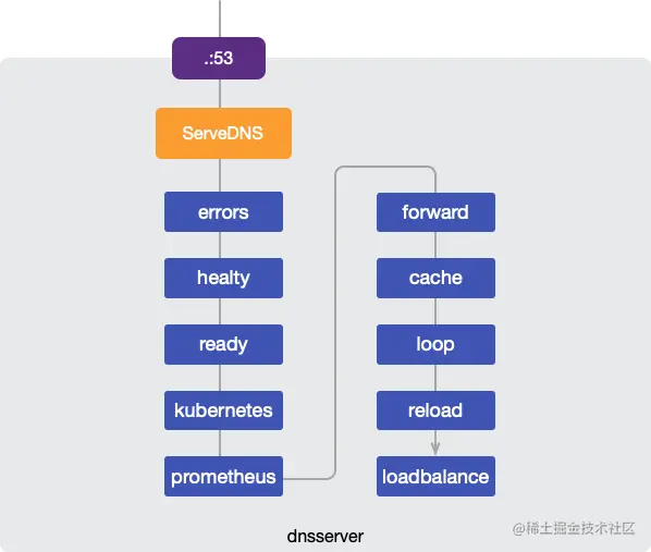 CoreDNS 在处理解析请求时,会按顺序执行各个插件。