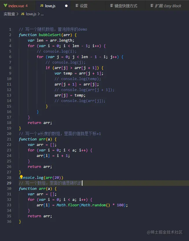 // 写一个冒泡排序