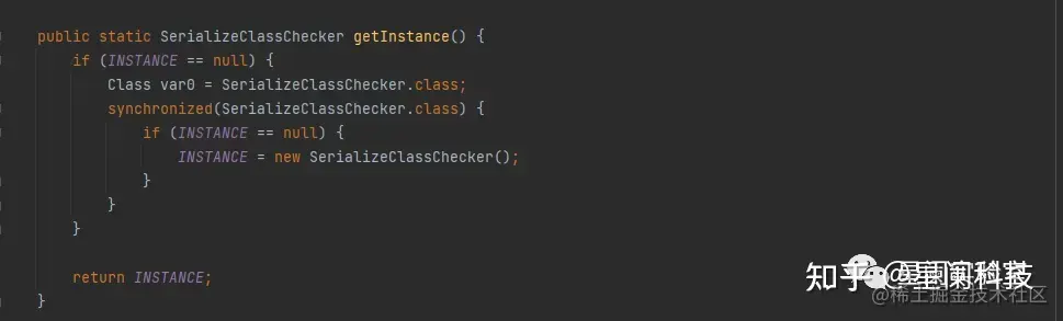 在SerializeClassChecker.getInstance方法中,使用Singleton模式(单例模式)