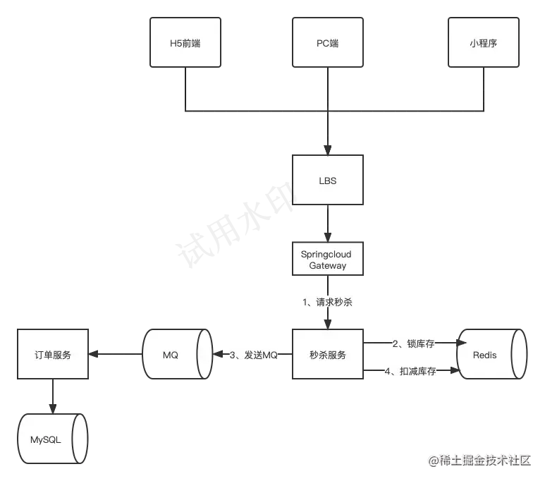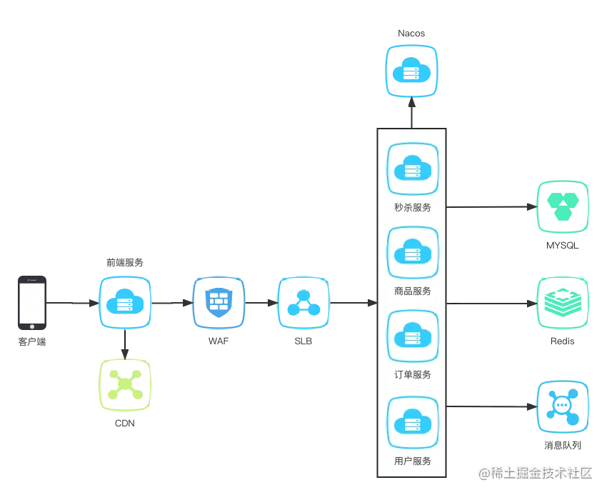 秒杀系统的常用架构: