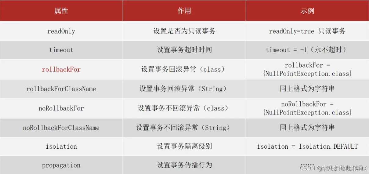 ● noRollbackForClassName等同于noRollbackFor,只不过属性为异常的类全名字符串