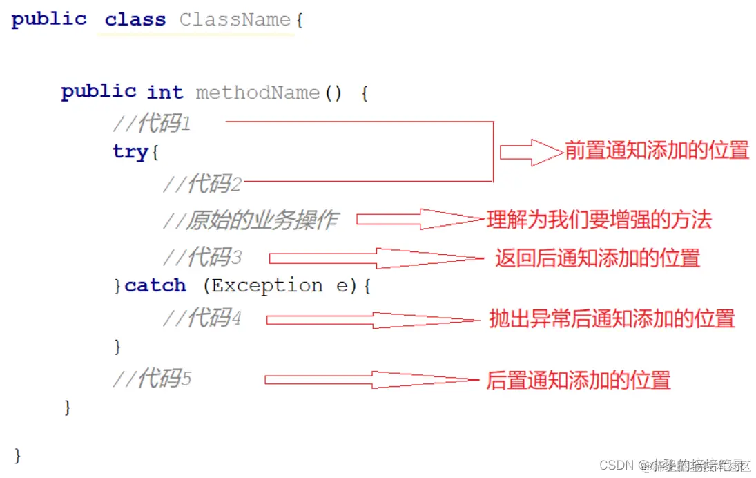 (5) 通知是一个方法,方法不能独立存在需要被写在一个类中,这个类我们也给起了个名字叫通知类