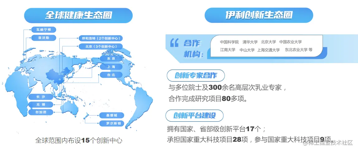 **其中,关键是创造新供给。**从投资者日展示来看,伊利最突出的内容是全球创新生态:自2013年起,伊利全面推动其“全球织网”海外战略。如今,伊利在欧洲、亚洲、大洋洲等地建设了15个创新中心,将行业基础研究和尖端技术开发全球化。