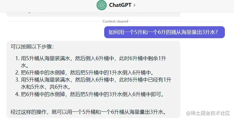 问:如何用一个5升和一个6升的桶从海里量出3升水?