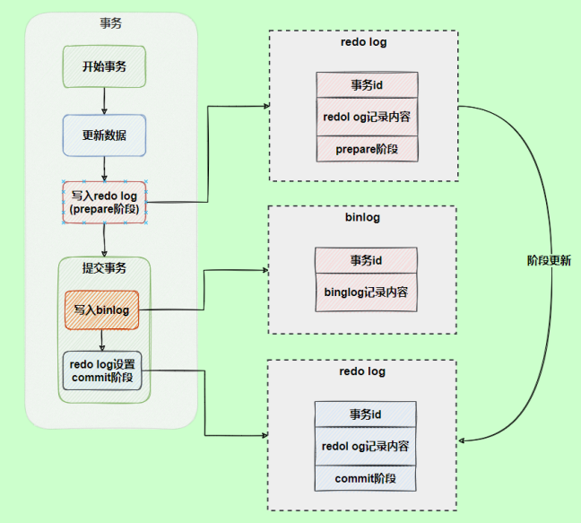 针对这种情况,MySQL对redo采用两阶段提交。Preare和Commit。