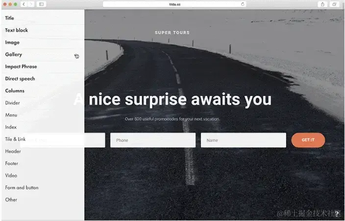 Tilda Publishing 同样是一个网站搭建平台,不过它更偏向内容型网站平台。170多款预制的设计模块,通过托拽完成布局,这样的设计还可以很好的保持响应式,确保你所设计 的网站能够在所有设备上正常打开和浏览。所以,如果你设计的是新闻、资讯、杂志等内容网站,这款工具几乎是为你而生的。
