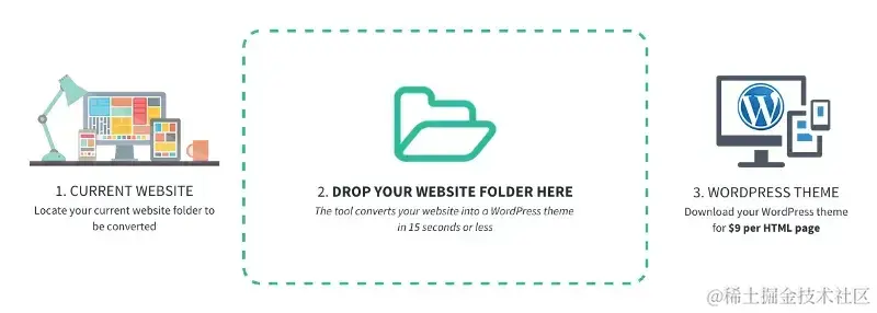 顾名思义,这款名为 HTML to WordPress 的工具可以帮你将静态的HTML网站转化为Wordpress主题。如果你目前正打算更新、切换、迁移网站,那么这款工具能够帮你省去很多麻烦,仅需几秒钟,你就可以让你的新网站拥有和以往某个网站完全相同的样子,而你需要做的就是上传新生成的主题,然后激活它。