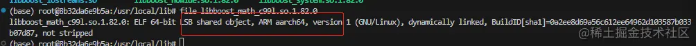 完成后会在 /usr/local/lib 下生成 libboost*.so 文件,可以用 file 命令来查看一下到底是不是咱们想要的版本,随便挑一个库查看就行,比如:
