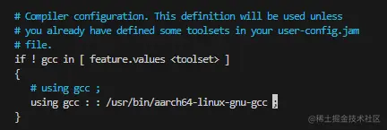 using gcc : : /usr/bin/aarch64-linux-gnu-gcc ;