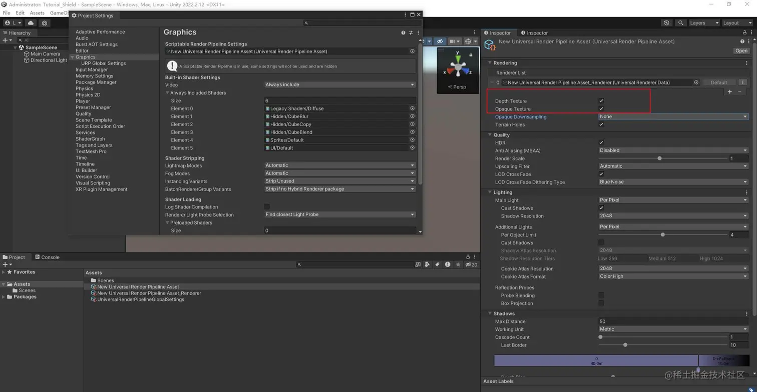 记得勾选DepthTexture和OpaqueTexture,之后会用到。