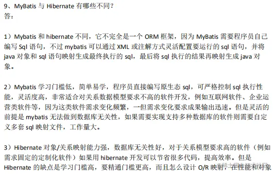 9、MyBatis 与 Hibernate 有哪些不同?
