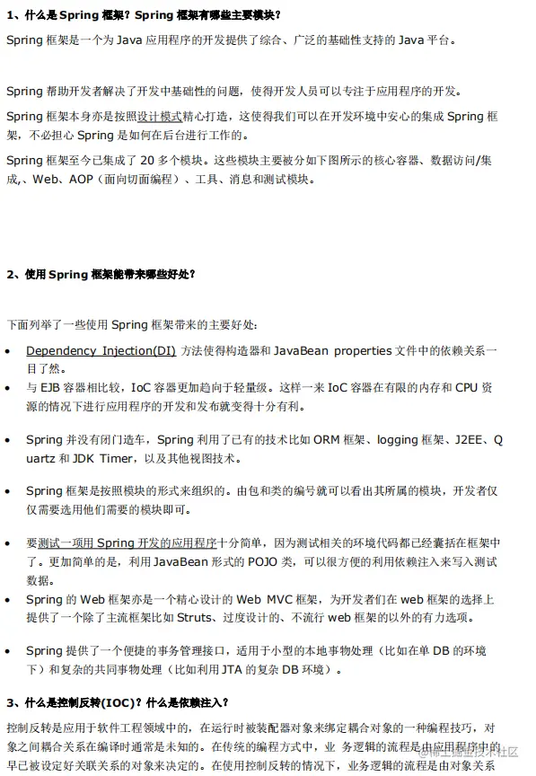 由于篇幅太长小编无法全部展示出来,Spring篇面试题小编总共为大家收录了29条包含22页PDF,另外附赠其他方面的面试题,需要的小伙伴加以说明哟~