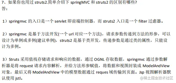 7、如果你也用过 struts2.简单介绍下 springMVC 和 struts2 的区别有哪些?
