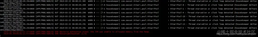 红字的信息为:Resource exhaustion event:the JVM was unable to allocate memory from the heap.