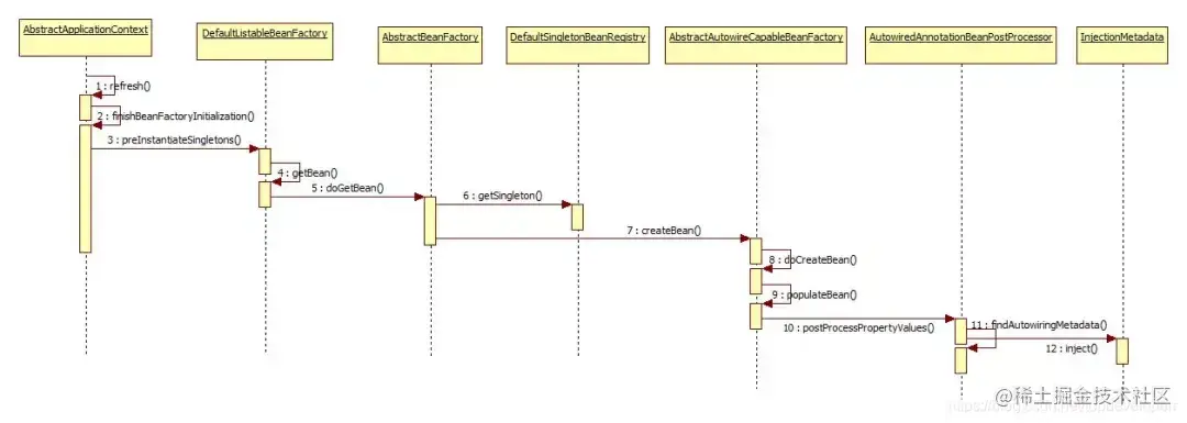 以上,就是@Autowire注解实现逻辑的全部分析。结合源代码再看一遍的话,会更加清楚一点。下面是spring容器如何实现@AutoWired自动注入的过程的图:
