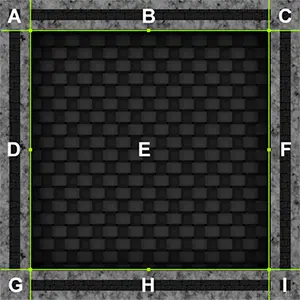 使用 Unity 的九宫格纹理技术(9-slicing Sprites)。九宫格纹理是一种将图片分成九个区域的技术,其中四个角落区域保持原样,四个边缘区域在平铺时只沿一个方向拉伸,中间的区域则在两个方向上拉伸。