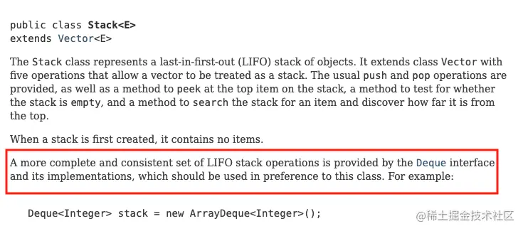 虽然 Java 中有 Stack 这个类,但是呢,官方文档都说不让用了!