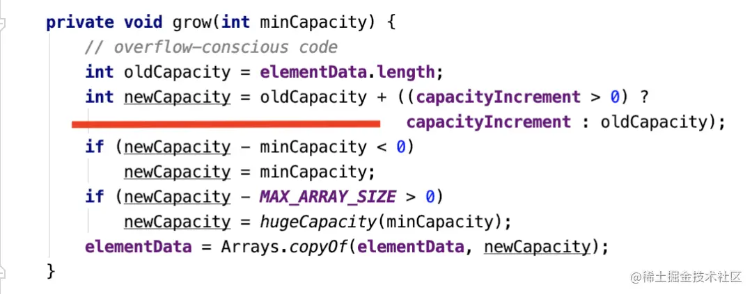 因为通常 capacityIncrement 我们并不定义,所以默认情况下它是扩容两倍。