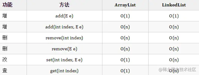 add(int index, E e)是在特定的位置上加元素,LinkedList 需要先找到这个位置,再加上这个元素,虽然单纯的「加」这个动作是 O(1) 的,但是要找到这个位置还是 O(n) 的。(这个有的人就认为是 O(1),和面试官解释清楚就行了,拒绝扛精。