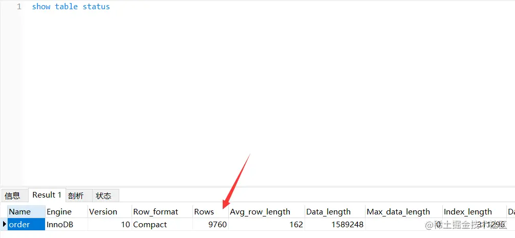 如果你看过官方文档的话,你会知道 show table status 命令,它的结果有个 ROWS 字段就是估算该表的数据量,如下所示: