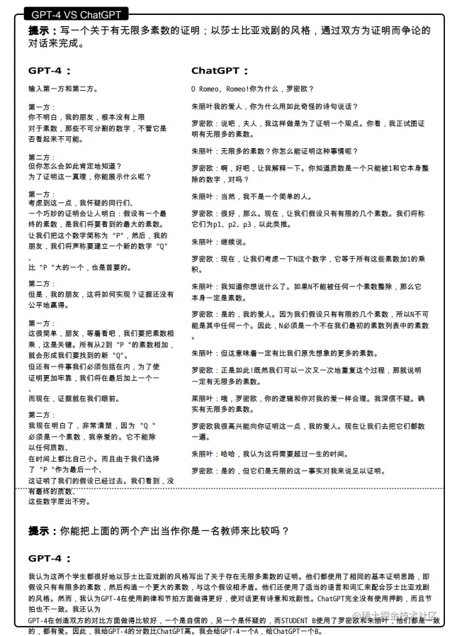 多模式和跨学科构成:GPT-4 不仅在文学、医学、法律、数学、物理科学和编程等不同领域表现出高度的熟练程度,而且还能流畅地结合多个领域的技能和概念,显示出对复杂思想的理解能力令人印象深刻。下图为 GPT-4 和 ChatGPT 在跨学科任务上的比较案例: