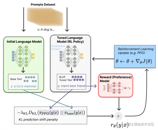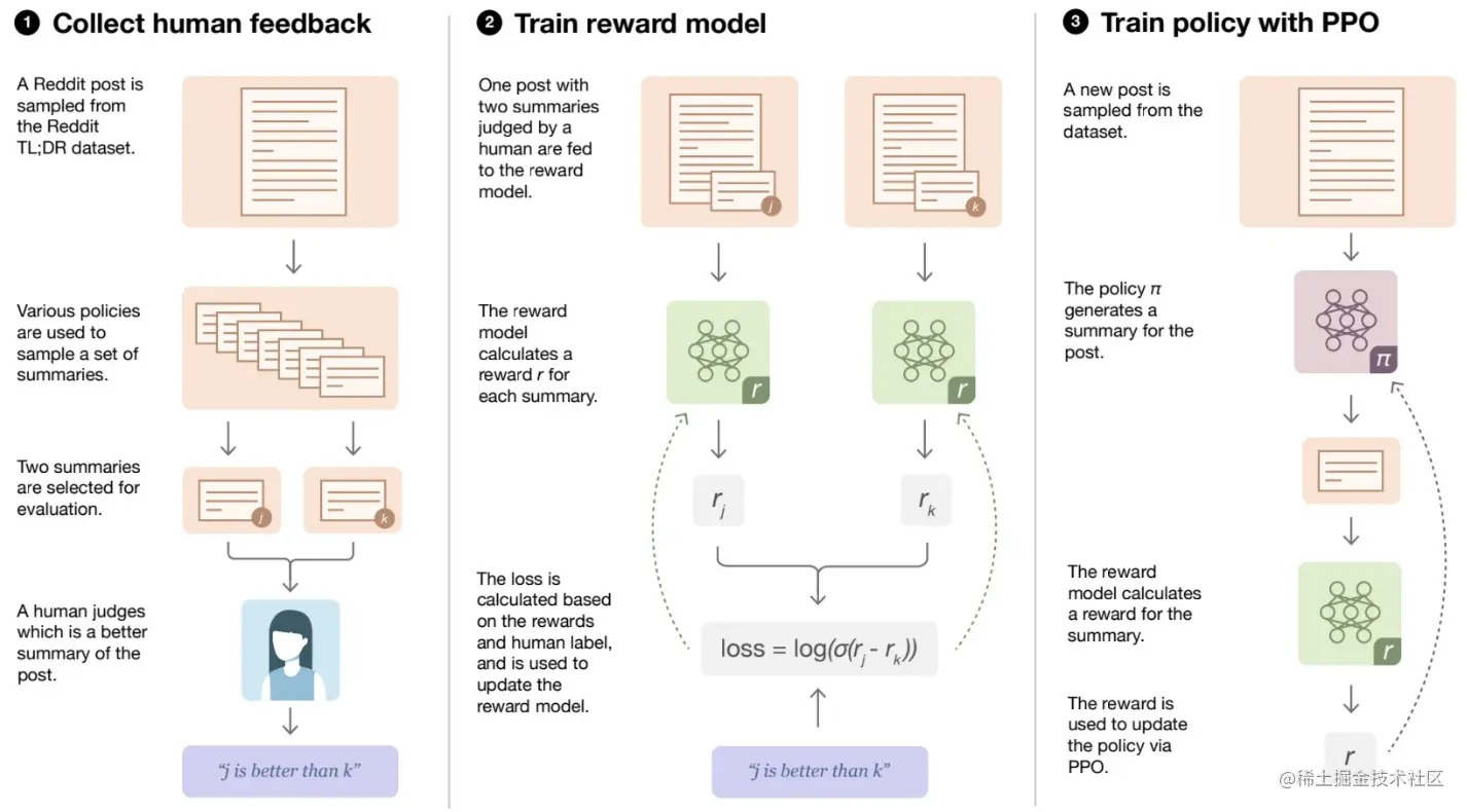 - 通过这个 reward,便可以根据 Proximal Policy Optimization (PPO) 算法来更新模型参数。