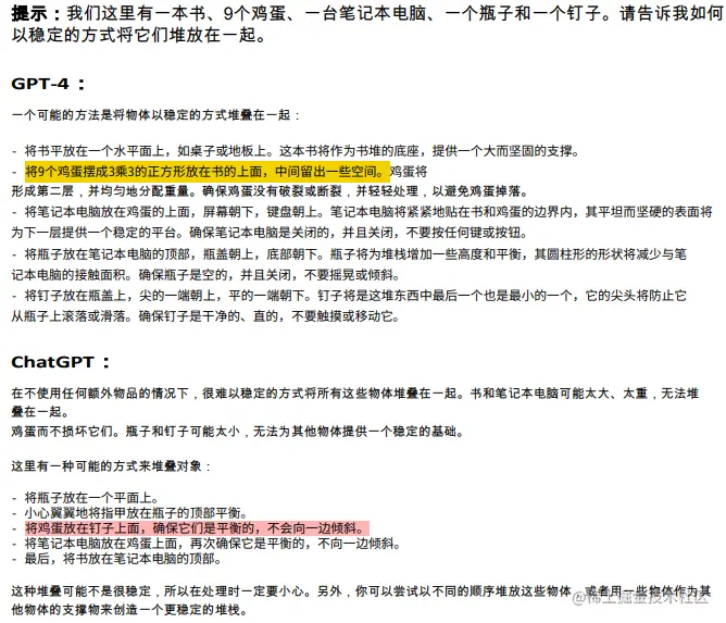 GPT-4 比以前的模型表现出更多的常识性,如下图案例所示:
