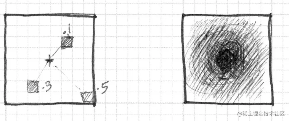 将这个过程翻译给 shader 意味着纸上的每个方形格点都会隐含着问每个像素(线程)是否在圆的区域以内。我们通过计算像素到中心的距离来实现(这个判断)。