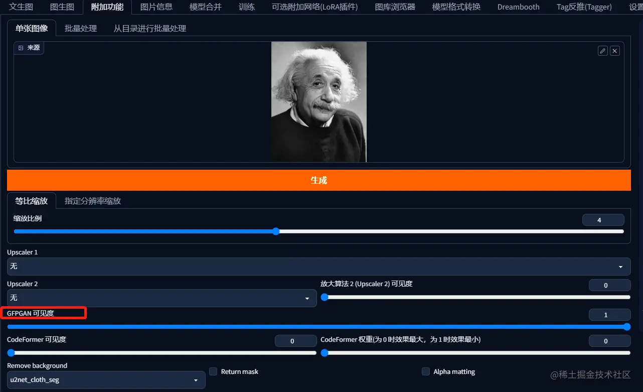 其他参数不变,直接将GFPGAN参数拉到1,就可以了。