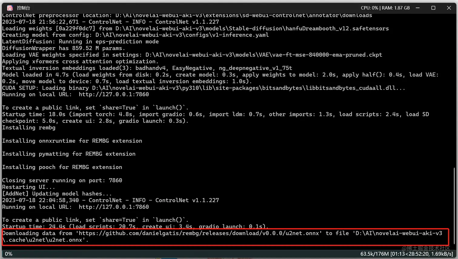 遇到的问题:我这里控制台下载速度非常的慢,于是手动去下载,然后放到对应的目录内