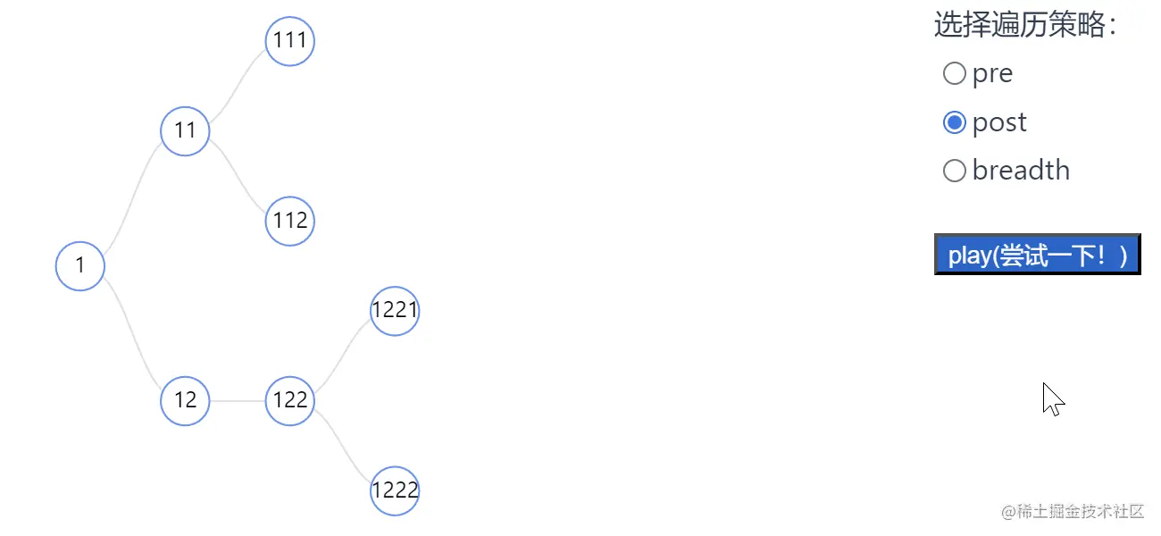 - 通过非常容易理解的动图,理解三种遍历策略
