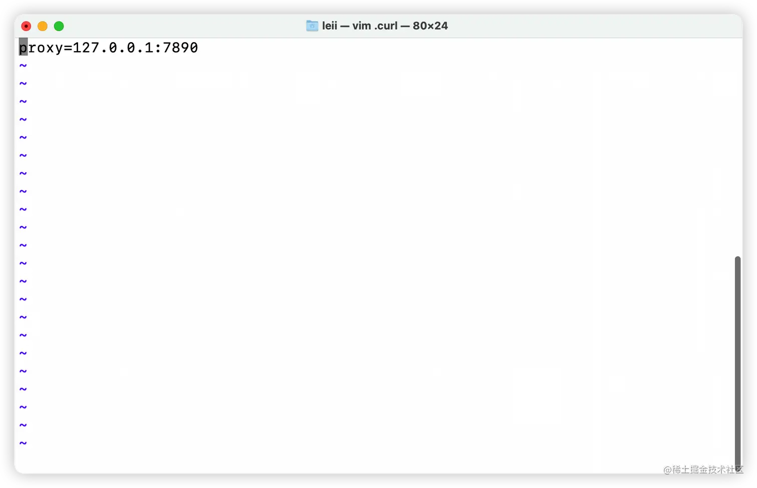 第一种方式的镜像效果可能并不显著,那么我们将采取第二个方法:修改curl的代理,因为brew是利用curl来进行下载的,因此我们可以检查根目录cd ~下是否存在.curl文件,如果没有可以创建一个(touch .curl),接着填入proxy=ip:port的组合,如: