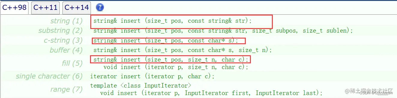 上图为常用的修改用法。当然,其他的用法还有很多。如果想了解的过可去C++官网(cppreference)或者 cplusplus 的标准库中查询。具体也可看下图: insert