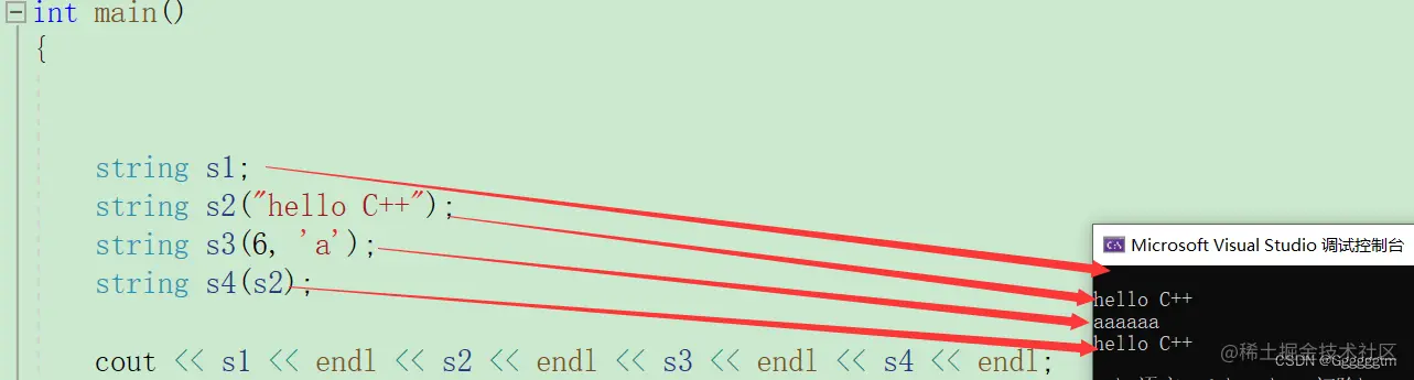 构造空串,其有效字符长度为0,但是实际上是开辟了一个字节的空间存储 '\0' 的。具体如下: