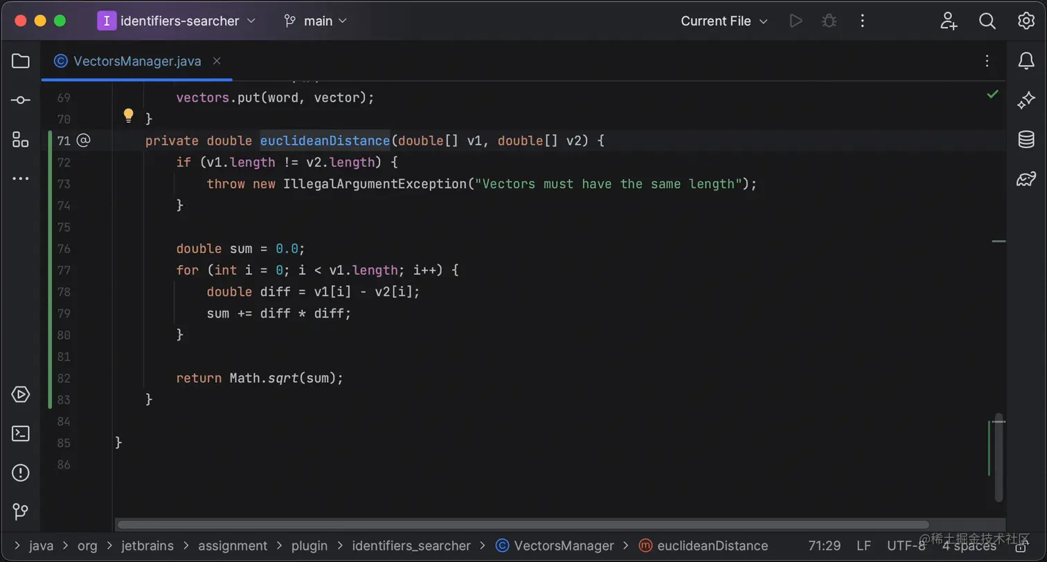 单击该功能之后,AI Assistant助手将根据代码更改的内容差异来自动生成Commit信息,可以说非常方便了。