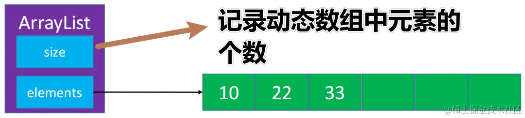 size记录动态数组中元素的个数 🎑elements用于实际存储数据 🎑 动态数组的底层是 数组