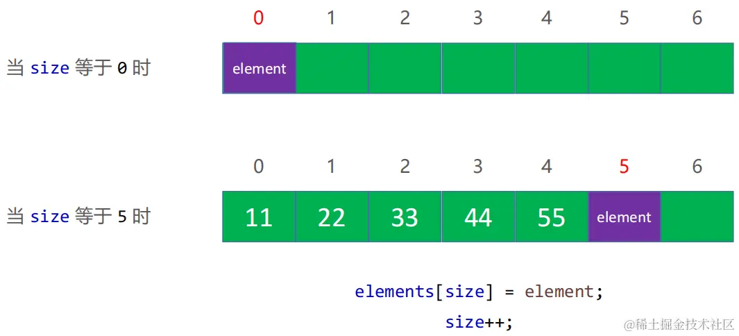 🕰️ 每次往尾部添加元素的时候,是往数组的索引为