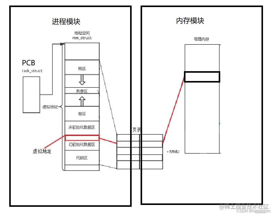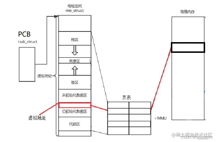 每个进程都会有自己的地址空间,同时进程控制块 *(PCB)中也包含了 mm_struct 指针,可使我们直接找到自己所对应的进程地址空间( 后组织)。 上述讲述的这么多,我们可以理解为进程地址空间就是 操作系统给进程花了一个大饼。 这个大饼就是指的 每个进程都会有4GB的连续的空间(0x00000000~0xFFFFFFFF)。实际上呢,这4GB的的空间是虚拟内存,虚拟内存对应的实际物理内存,可能只对应的分配了一点点的物理内存,实际使用了多少内存,就会对应多少物理内存。 这4G虚拟内存是一个连续的地址空间(这也只是进程认为),而实际上,它的数据是存储在多个物理内存碎片的,还有一部分存储在外部磁盘存储器上,在需要时将数据交换进物理内存。