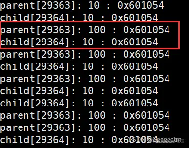 printf("child[%d]: %d : %p\n", getpid(), g_val, &g_val);