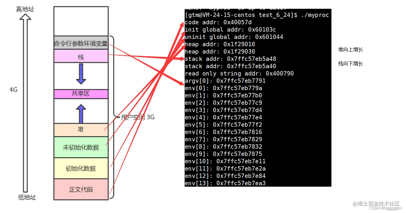 上图正是在Linux下运行的结果。在windows下运行的结果所得出的结论也是相同的。我们看到上图的运行结果后是符合我们所学的地址空间的规律。