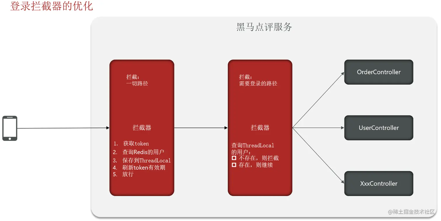 🎄 RefreshInterceptor 会拦截每一个请求,然后进行登录有效期刷新 🎄 上一节中的 LoginInterceptor 只有当访问需要登录校验的请求的时候才会刷新
