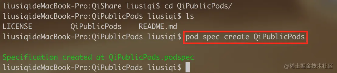 3. cd进入项目工程目录,创建podsName.podspec文件。