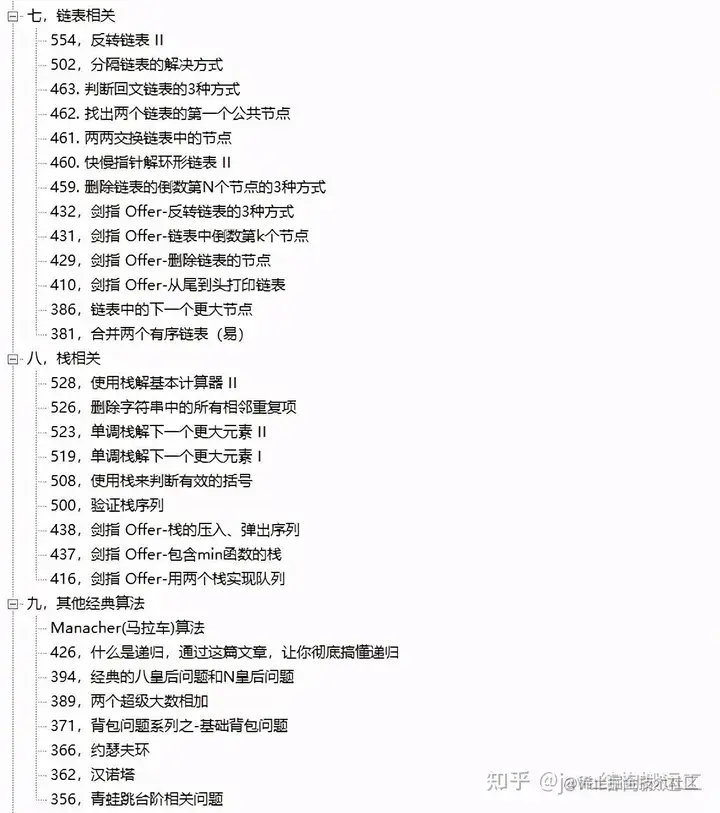 七,链表相关 八,栈相关 九,其他经典算法