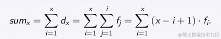 (2)计算数列每一项的前缀和:第i项的前缀和即为数列前i项的和,那么推导可知